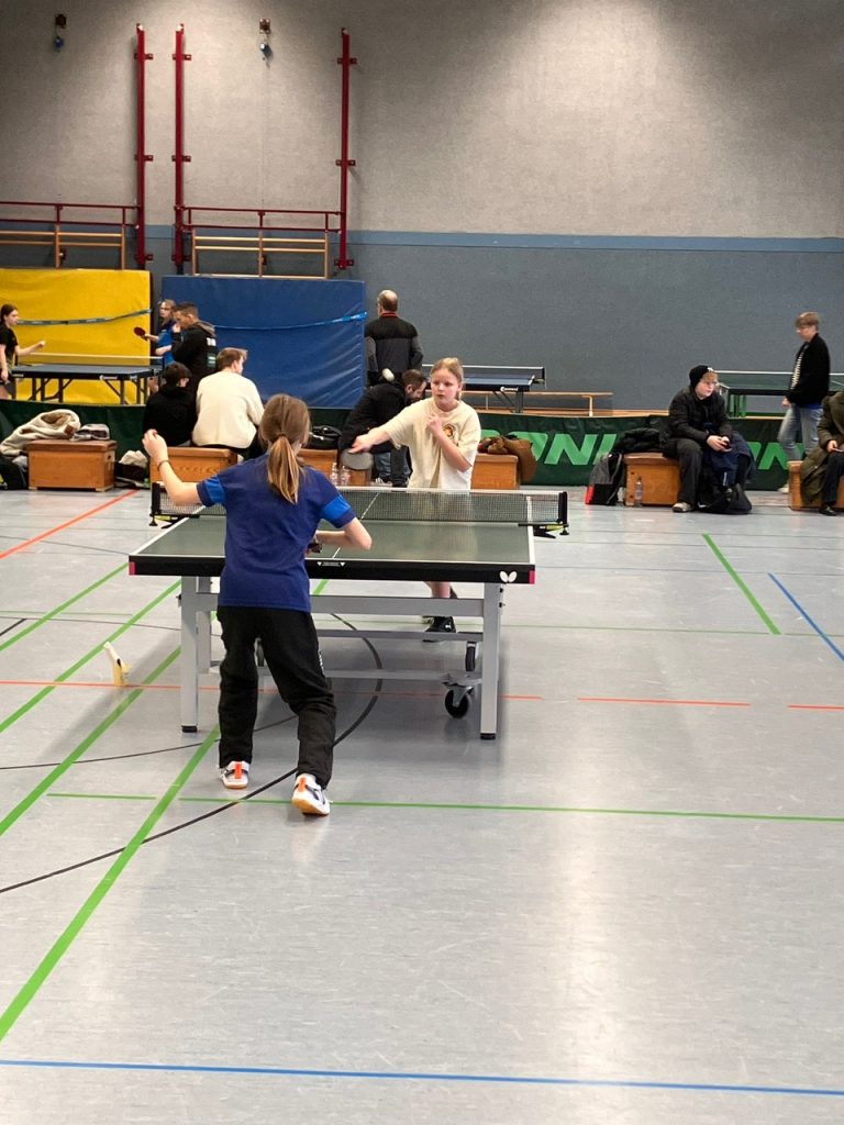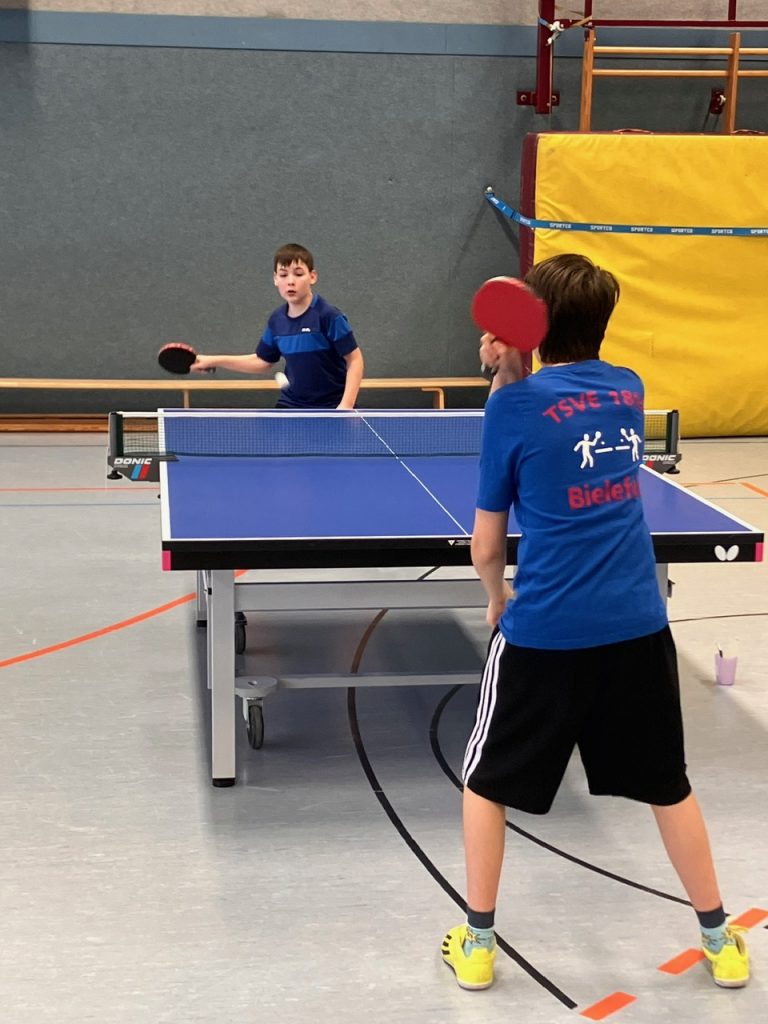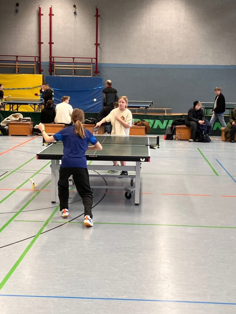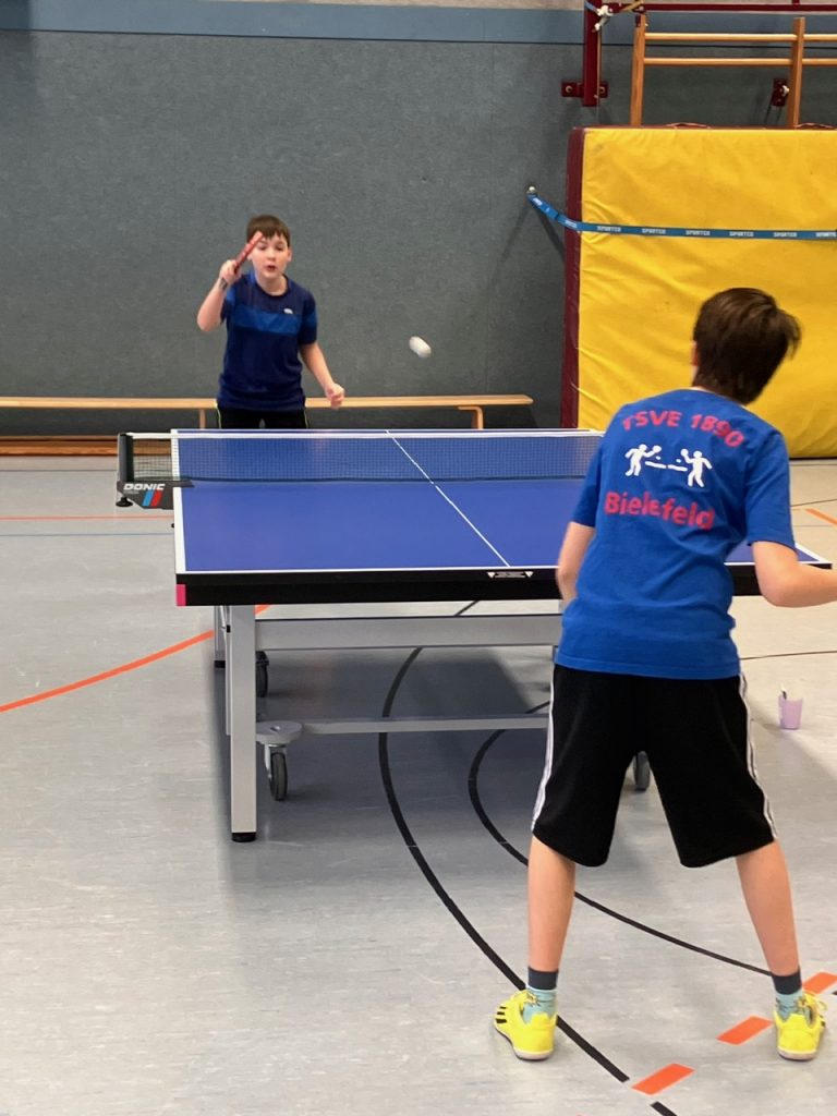 Unsere vier teilnehmenden eigenen Nachwuchstalente mussten schnell erkennen, dass sie zwar mit dem ein oder anderen Gegner mithalten konnten, bei der sehr starken Konkurrenz blieben sie jedoch häufig (noch!) chancenlos. Anders wäre es allerdings vielen gestandenen Spielerinnen und Spielern des TV Hille auch nicht ergangen. Trafen sich doch an der Platte u.a. Spielerinnen und Spieler mit tlw. 1700er QTTR-Wert. (Verbandsliga-Niveau bei den Erwachsenen).