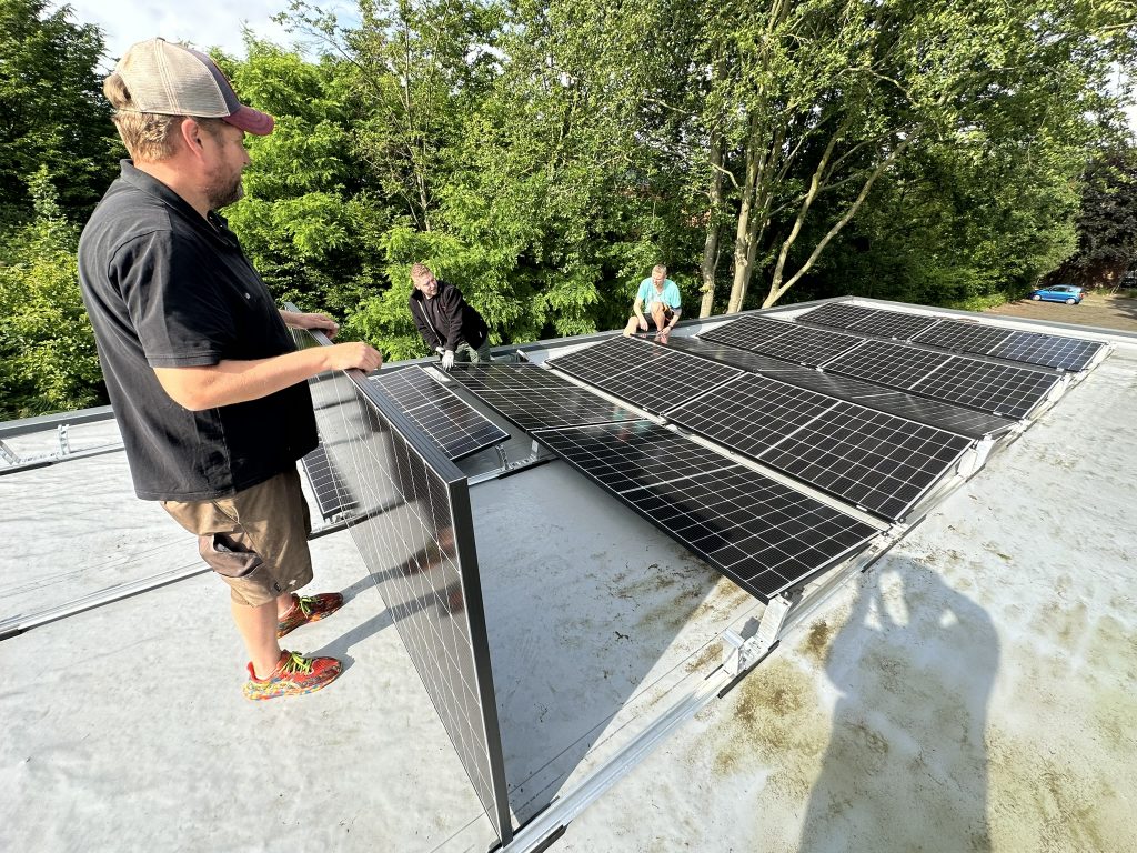 An einem Freitag Anfang Juni hob Andreas Bauhaus die Module der Anlage mit dem Kran hinauf. Es war ein Vorgang, der bemerkenswert lautlos wirkte – glänzende Paneele, langsam schwebend, als würden sie eine eigene Art Gravitation kennen.