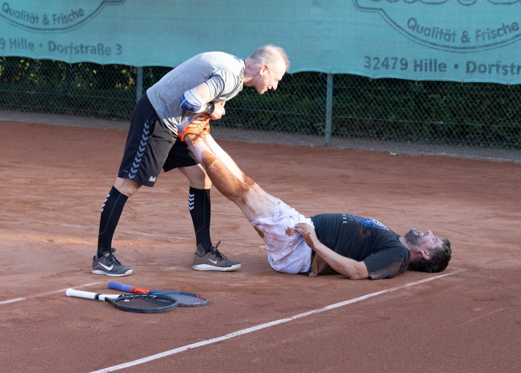 Tobi lag mit Krämpfen am Boden, Stefan stand noch, weil er musste.